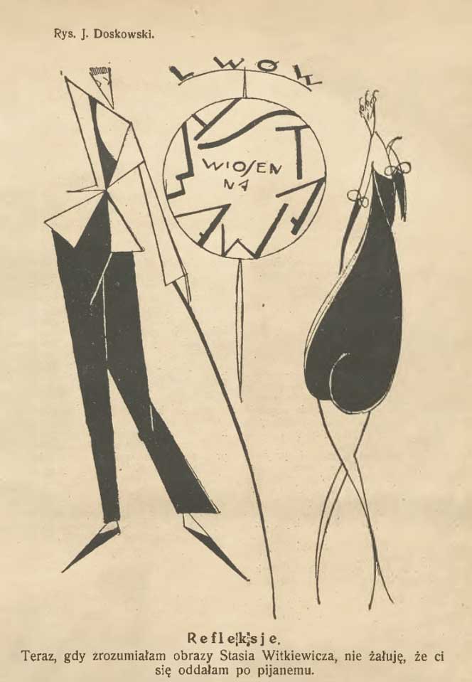 - "Kurier Czerwony" 1929, nr.140, Rok VIII, z 20 czerwca, s. 1: ...Modna pani wygląda tak, jakby wykombinowało ją natchnienie...Witkacego, według typu A+B+C. (dodał Przemysław Pawlak)