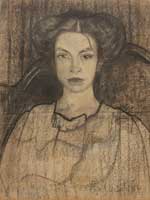- Portret Anny M., „Alcoforado” , I 1931 r. pastel, papier beżowy (pierwotnie jasnozielony) prążkowany, naklejony na kremową tekturę, 65,3 × 51,2 cm napis u dołu po prawej: Alcoforado/ (T.U + E)/1931 I., KDM nie notuje info domu aukcyjnego (dodał Tomasz Pawlak)