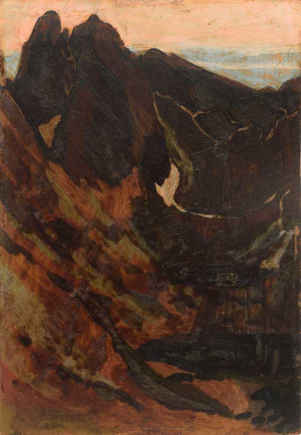 Kacza Dolina - Tatry, ok. 1911, olej, tektura; 32,5 x 22,5 cm; sygn. i dat. l. d.: Ignacy Witkiewicz 1916 [raczej 1911, w.s.] (dodał Tomasz Pawlak)