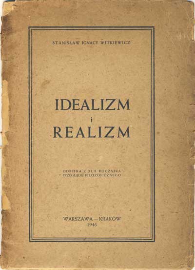 - S.I.Witkiewicz, Idealizm i realizm, odbitka z XLII Rocznika "Przeglądu filozoficznego", Warszawa - Kraków 1946