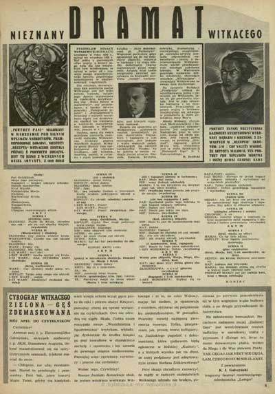 "(Przyp. Red.) Stanisław Ignacy Witkiewicz, znakomity malarz, autor dramatyczny i teoretyk, zmarł tragicznie jesienią 1939 roku. Pozostały po nim rękopisy, z których jeden pt. O artystycznym teatrze został wydobyty z gruzów Warszawy. (...)"