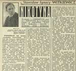 - List Witkacego z 20 VIII 1937 do prof. Juliusza Kleinera, który odwiedził go w Zakopanem, ale nie zastał w domu.