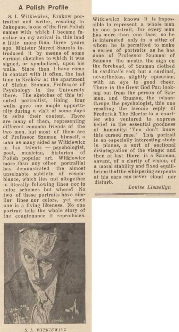 - Stefan Szuman, Portrety S.I. Witkiewicza, "Czas" 1931, nr 78 z 4 kwietnia, s. 7 (dodał Wojciech Sztaba)
