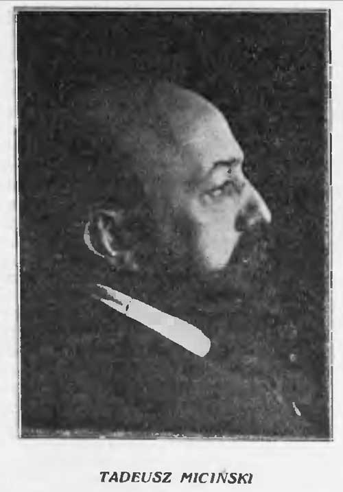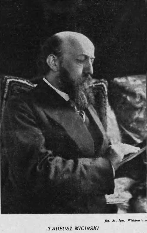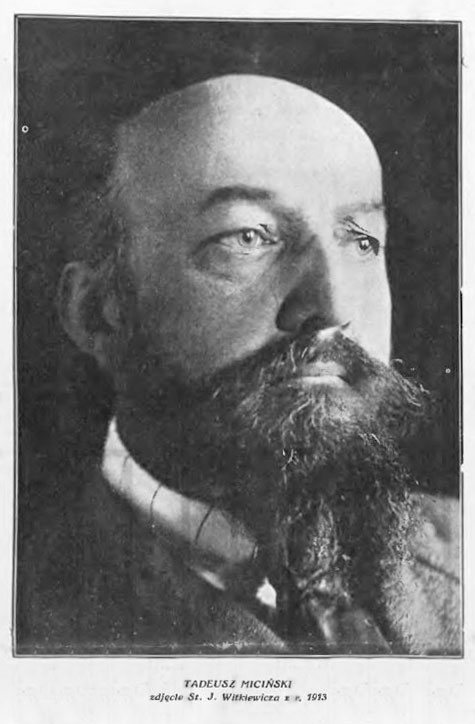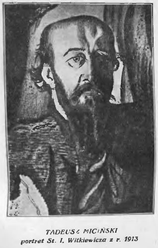 - Portret Tadeusza Micińskiego,TADEUSZ MICIŃSKI / zdjęcie St. I. Witkiewicz z r. 1913 (1912?) ( Na stronie z artykułem: Stanisław Ignacy Witkiewicz, Formalne wartości dzieł Micińskiego, "Wiadomości Literackie" 1925, nr 12 z 22 III, s. 3. Numer poświęcony pamięci Tadeusza Micińskiego. Małopolska Biblioteka Cyfrowa (dodał Włodzimierz Mirski)