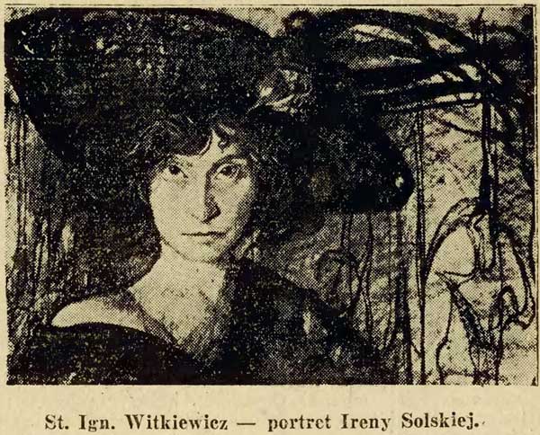 - Portret Ireny Solskiej, ok 1909-12, węgiel, zaginiony, (repr. w: Wojciech Sztaba, Stanisław Ignacy Witkiewicz. Zaginione obrazy i rysunki sprzed roku 1914 według oryginalnych fotografii ze zbioru Konstantego Puzyny, Warszawa 1985, il. 12) - rysunek inspirowany portretem Solskiej narysowanym przez Stanisława Wyspiańskiego w 1904 roku (il. zamieszczona w: Irena Solska, Pamiętnik, opracowanie Lidia Kuchtówna, Warszawa 1978, po s. 80) (dodał Wojciech Sztaba)