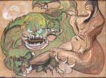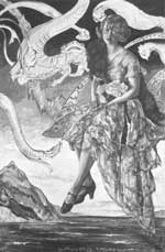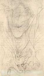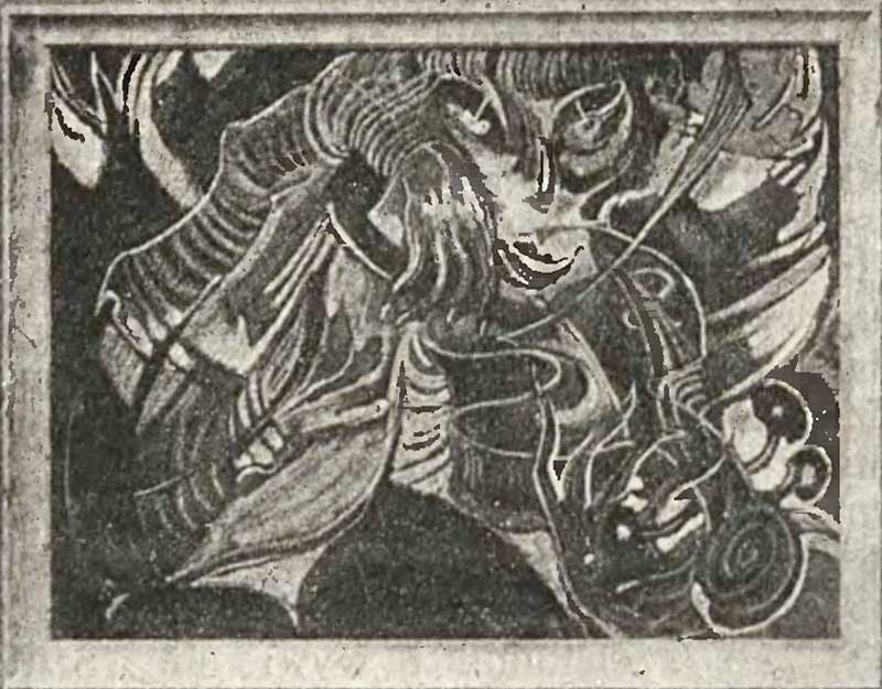- Książę Ciemności kusi św. Teresę przy pomocy kelnera z Budapesztu, węgiel, ok. 1913 (fragment). Zob. Wojciech Sztaba, Pocztówki z piekła, 1908