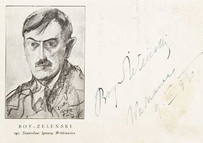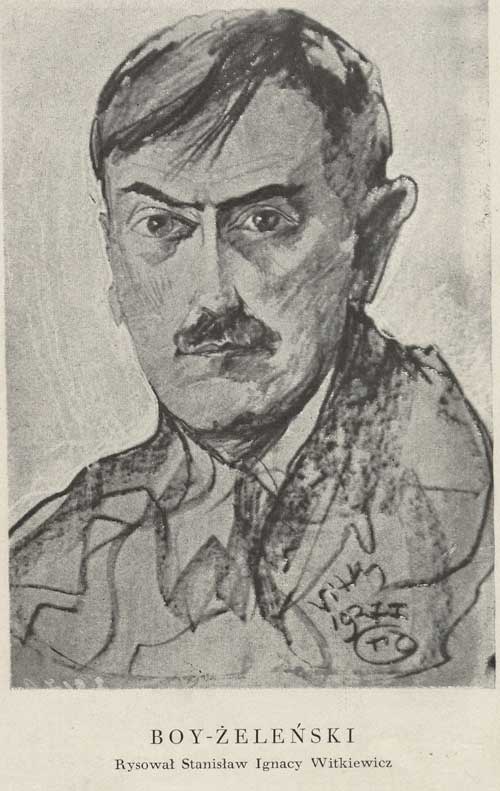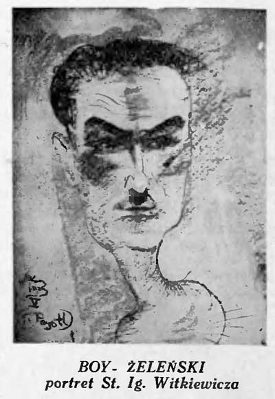 - Tadeusz Boy-Zeleński, sygn. Witkacy /1928 /VI / T.C; KDM 813, w: J.Em. Skiwski, Problemat Boya, "Wiadomości Literackie" 1929, nr 11 z 17 marca, s. 1 (dodał Włodzimierz Mirski)