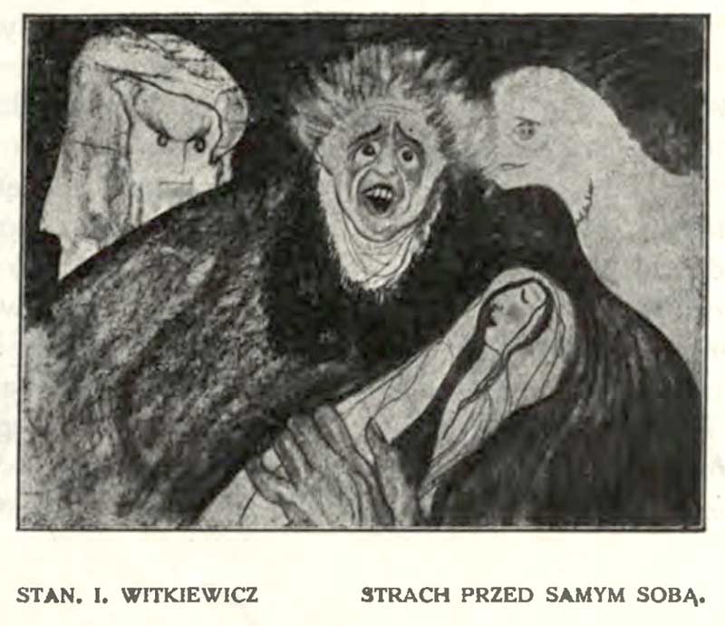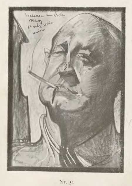 - Strach przed samym sobą, ok. 1910, rysunek węglem, (zaginiony), reprodukcja w: "Maski" 1919, N.7, s. 107, KDM 225 (dodał Tomasz Pawlak)