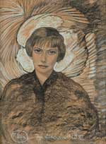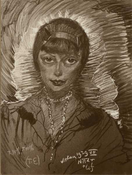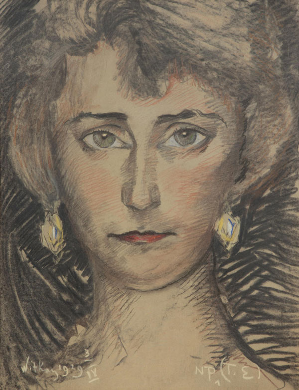 - Portret Jadwigi Witkiewiczowej, 1929, pastel, papier beżowy, 68.5 cm x 49 cm sygn. u dołu, po prawej: (T. E + U) 1929 XII | Maciej Witkiewicz, Agra Art, Aukcja 3.6.2012