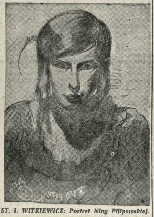 - Portret Janiny Filipowskiej, 1928, sygn. p.d. Witkacy /(T.E) cof /NΠ 89 1929 IX . Nie wymieniony w KDM. Reprodukcja w: Recenzja z wystawy w Zakopanem 1930: S. Trepte, Malarstwo „mediumiczne” w Zakopanem, „Ilustrowany Kurier Codzienny”. 1930, nr 37, dod. „Kurier Metapsychiczny” 1930, nr 6 (s. 12). Tu także reprodukcje obrazów Niny Filipowskiej i Teodora Białynickiego-Biruli. Zob. Wystawa prac malarskich art. mal. Białynickiego-Biruli, Niny Filipowskiej, St. I. Witkiewicza, Zakopane 19 I 1930, Sala Hotelu "Poraj" (dodał Wojciech Sztaba)
