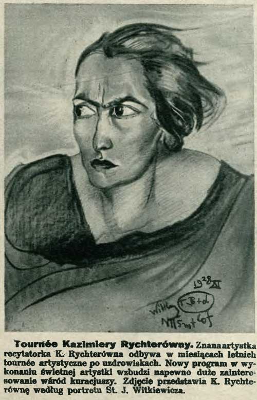 - Portret Kazimiery Rychterówny, sygn. 1928 XI / Witkacy / (T.B+d) / NΠ 5 m + Cof, KDM I 875, "Wiadomości Literackie" 1929, nr 47 i "Tęcza" 1929, nr 50 (nie ma tego numeru "Tęczy" w bibliografii KDM), "Ilustrowany Kuryer Codzienny" 1931, dodatek do numeru 198 z 27 lipca. (dodał Tomasz Pawlak)