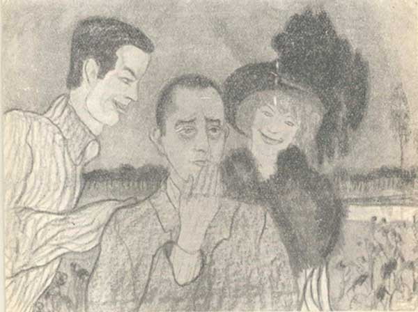 - Strach przed miłością do błazna, rysunek węglem, ok. 1910, reprod. w: "Świat" 1919, Rok XIV, nr 20 z 17 maja, s. 9. (dodał Wojciech Sztaba)
