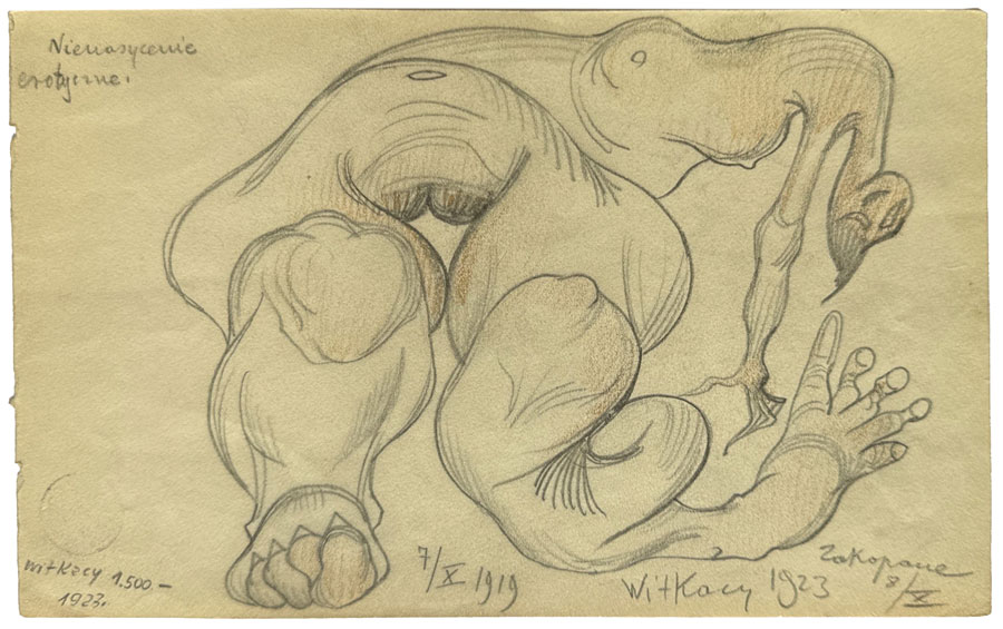- "Kompozycja z leżącą parą", 1916, pastel, węgiel/papier, 47,5 x 61,5 cm, sygnowany i datowany p.d.: Ignacy Witkiewicz | 28/IX 1916+. KDM I 266. Desa Unicum, Sztuka dawna. Prace na papierze, 15.11.2022 (dodał Tomasz Pawlak)