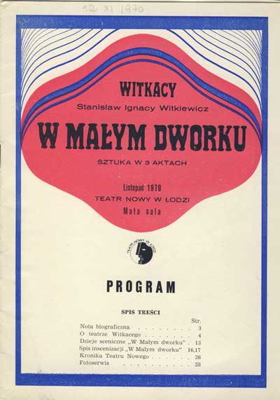 W programie: C. Miłosz, St. Ign. Witkiewicz; J. Degler, Debiut teatralny Witkacego; J. Degler, Toruńska prapremiera "W małym dworku"