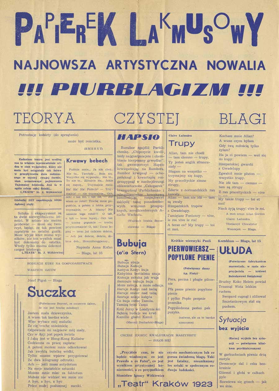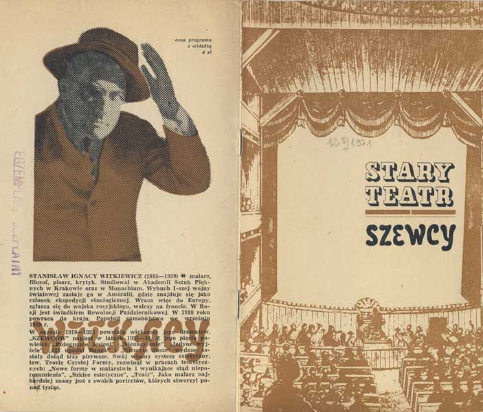 W programie: S. I. Witkiewicz, O nowym typie sztuki teatralnej; T. Peiper, Czysta Forma w teatrze. |