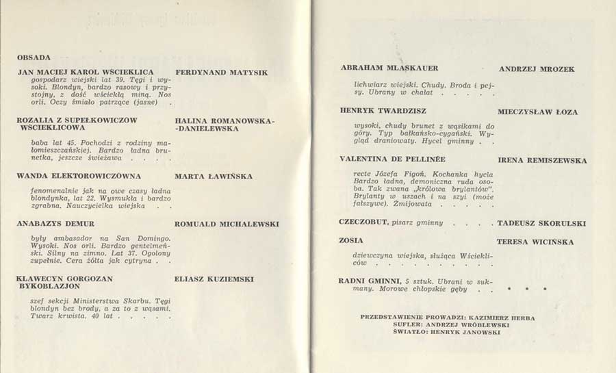 Reżyseria i scenografia: Jerzy Grzegorzewski