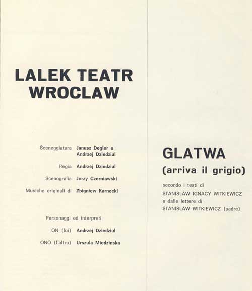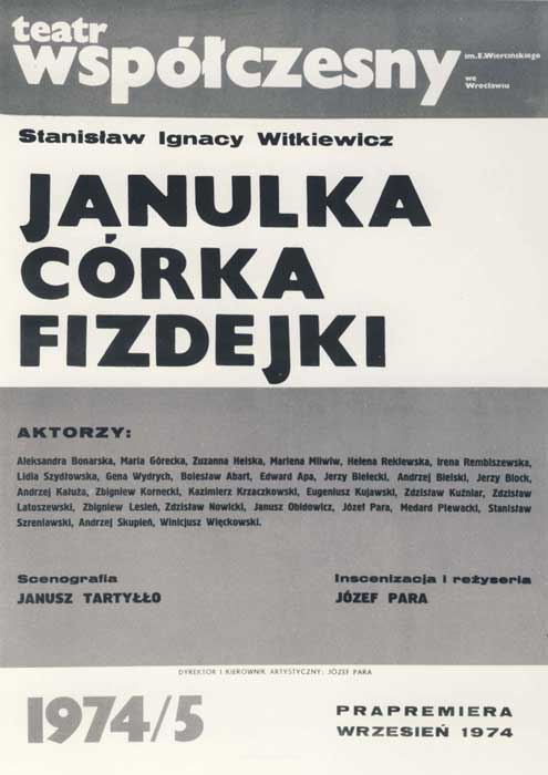 W programie: Witkacy w teatrze (fragmenty Wstępu do teorii Czystej Formy w teatrze). Wybór: J. Degler