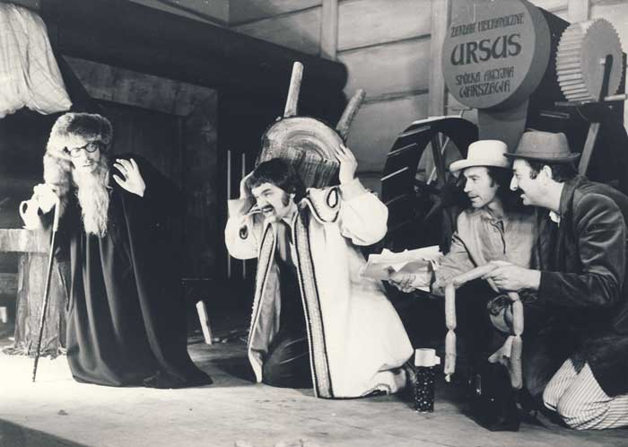 Od lewej: Czesław Kordus (Abraham Mlaskauer), Ireneusz Karamon (Wścieklica); Henryk Gońda (Kierdelion), Cyryl Przybył (Czeczobut) |
