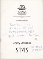 Wykorzystano fragmenty Dramatu nierozpoznanego, autoparodie: Redemptoary i Romans schizofrenika, fragmenty Manifestu Czystej Blagi oraz motywy kilku wierszy Andrzeja Bursy i teksty własne zespołu. Spektakl uzyskał wyróżnienie XIII Konfrontacji Teatru Amatorskiego Województwa Gdańskiego |