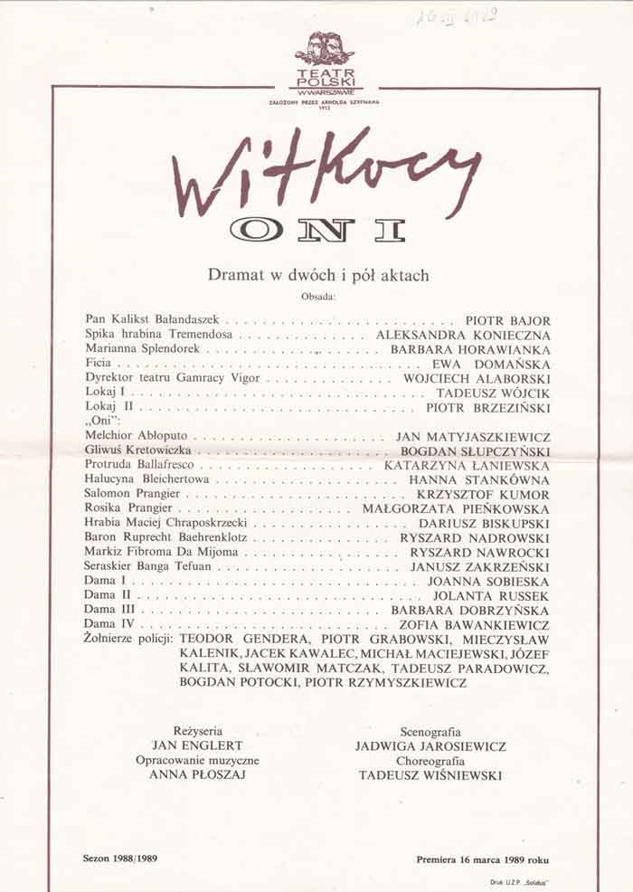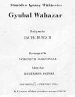 Libretto: Edward Bogusławski wg dramatu Stanisława Ignacego Witkiewicza
