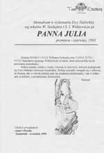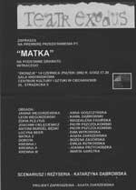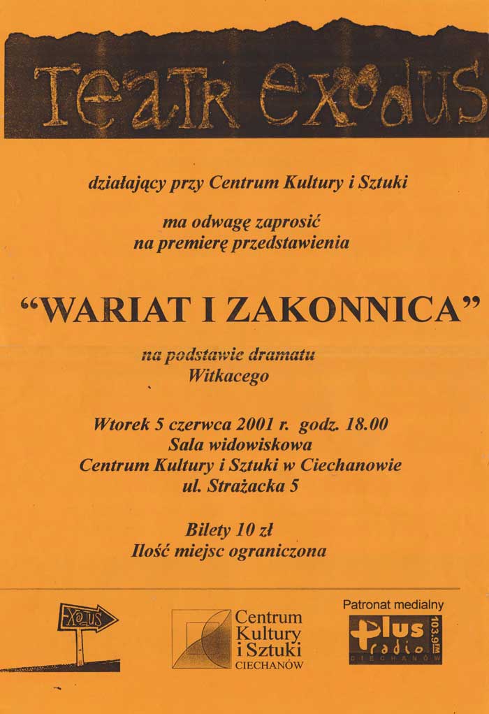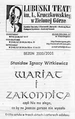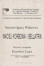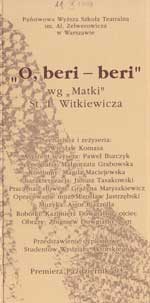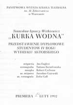 Premiera: 21 VI 1992 w czasie Tygodnia Witkacego w Europejskim Miesiącu Kultury |