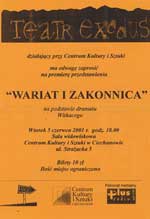 Ciechanów, Kawiarnia Artystyczna Centrum Kultury i Sztuki, Teatr Exodus Scenariusz i reżyseria: Katarzyna Dąbrowska
