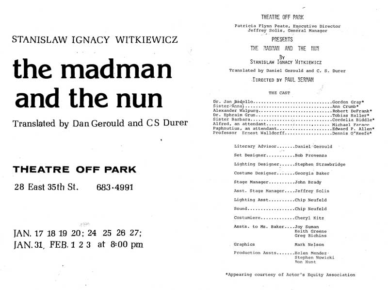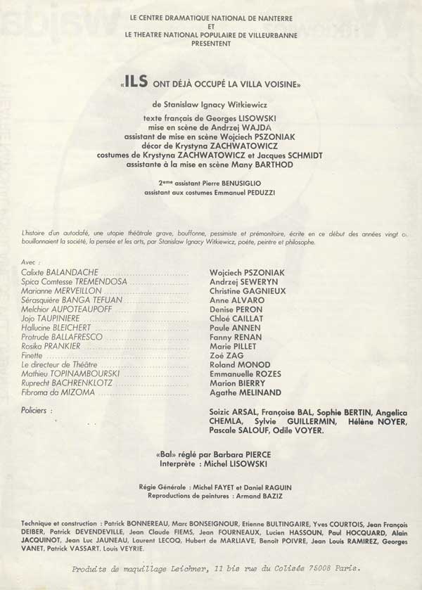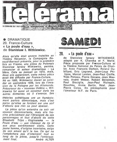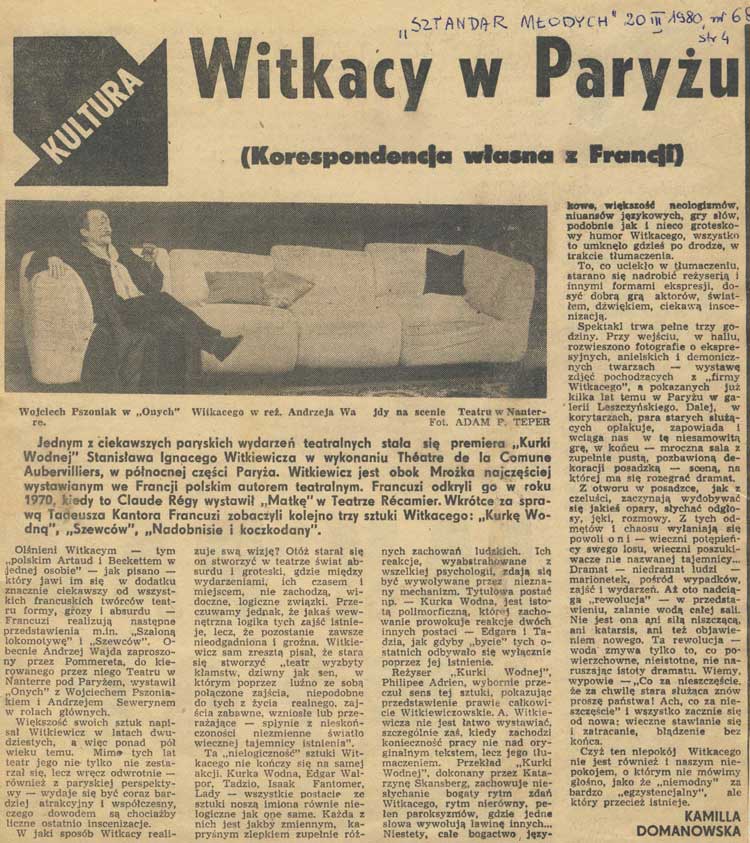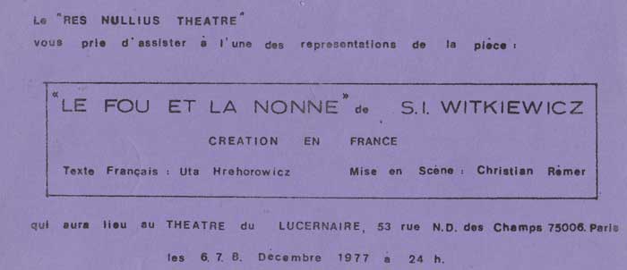 Zob. L. Sokół, Witkacy po parysku, "Teatr" 1977, nr 8.