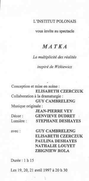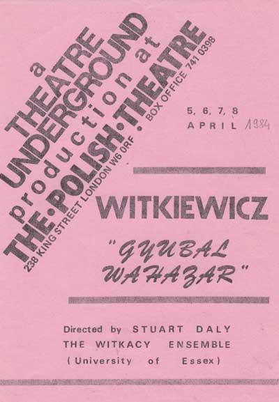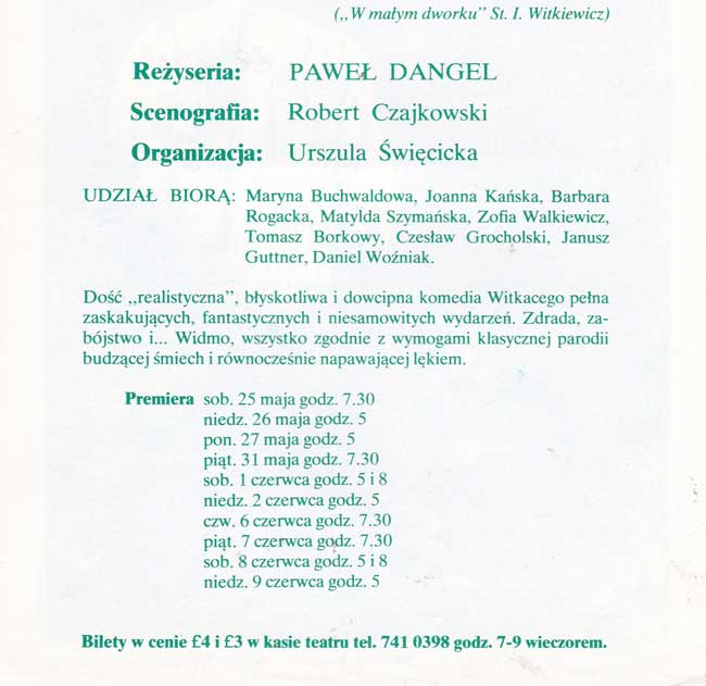 Występy w The Polish Theatre (Polski Ośrodek Społeczno-Kulturalny) w Londynie: 5-8 IV 1984 |