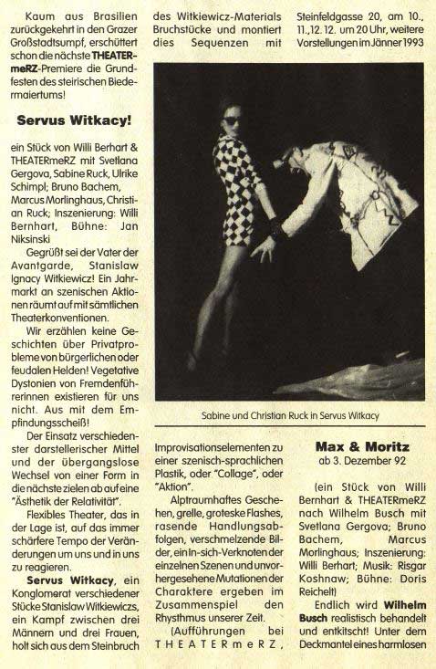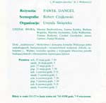Program występu w Ośrodku Badan Twórczości Jerzego Grotowskiego i Poszukiwań Teatralnych (3-4 III 1998)