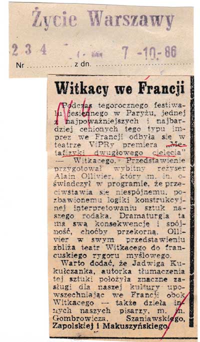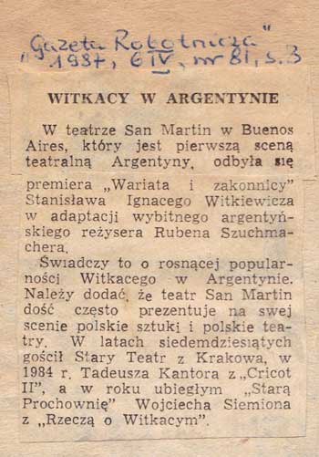 zob. Janusz Degler, Witkacy na świecie Witkacy around the World |